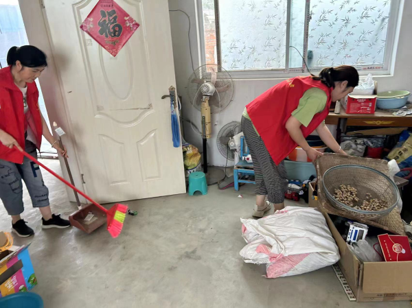 (图为泥河镇助残志愿者在为困难残疾人打扫卫生)